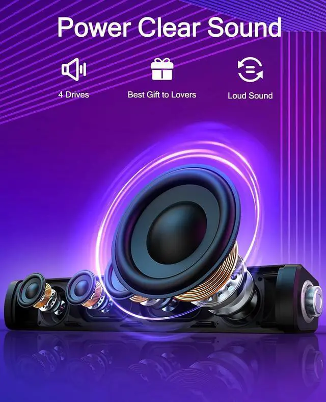 Powerful Sound & Simple Knob: Computer speakers with 4 drives is loud with noiseless. One knob to control power and volume to replace complex buttons.