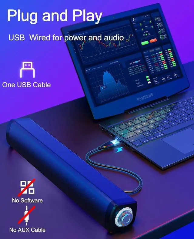 USB Cable Power & Plug and Play: Desktop speakers no need for drives and AUX cable! Only one USB cable for power and audio, plug and play.