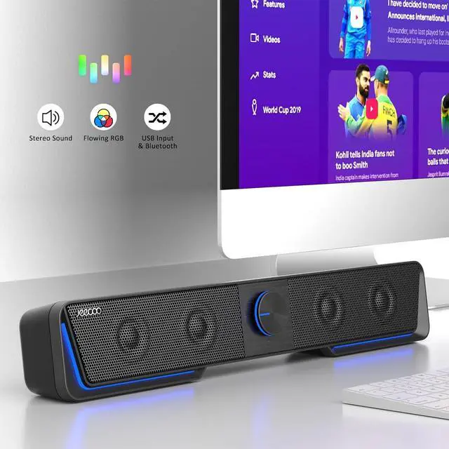 There are 4 LED modes on monitor speakers: rainbow color flowing - changing color pulsing - single color changing - select a solid color - light off. This PC speakers fit your setup seamlessly.