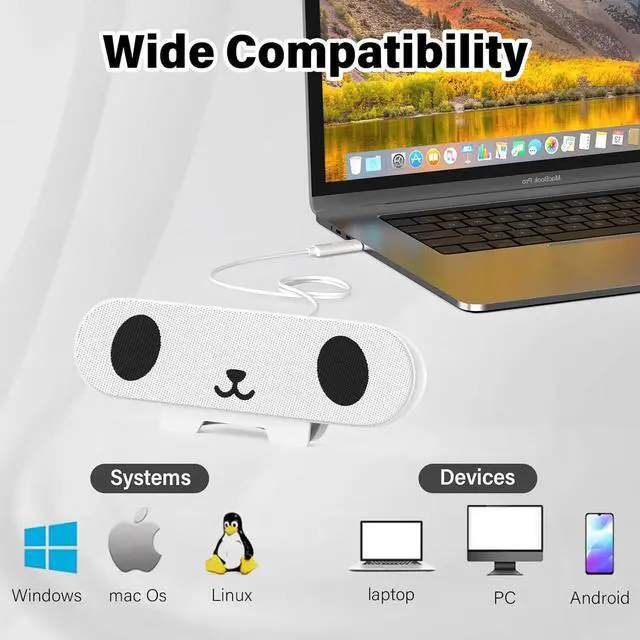 Wider CompatibilityOur Pc speaker for desktop with the latest built-in decoder chip are compatible with Laptops, Pc and some android Phones with type-C port, as long as they have the latest audio drivers installed for the sound card. USB C to USB Adapter in the box will make the speaker work well with Type-C port only devices like Android phones, Macbook Air, Pro, or other devices (not icnluding iPhone 15). More Compatible than other speakers with only USB cable