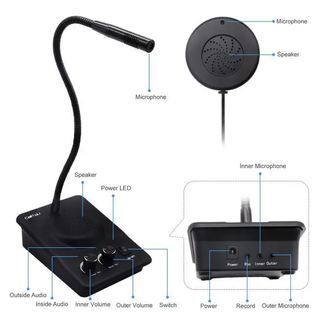 CallToU window speaker intercom is suitable for the voice communication in closed business window or noisy places.With advanced language processing chip, unique design and strict quality management. It has the characteristics of clear sound quality, controllable volume, anti-interference and anti-howling.
