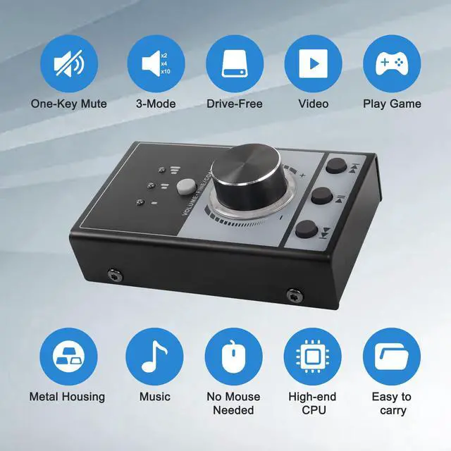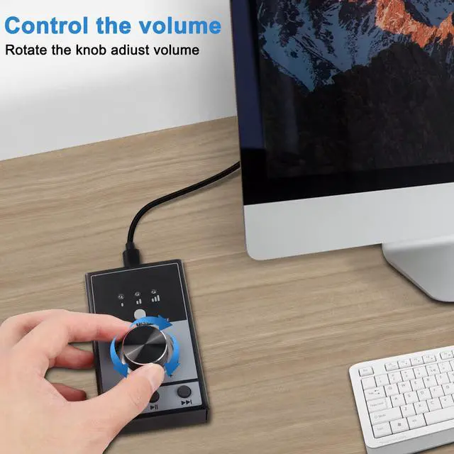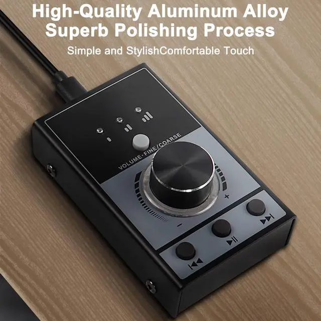 - ultimedia USB computer volume adjustment controller, looks simple, but the substance is extraordinary. Full metal texture, hand feeling manipulation is very strong, the bottom flexible silicone strong non-slip, strong compatibility ,USB power supply, plug and play, no need to install any plug-ins. Support problem is size adjustment, song switching, and even a key to mute, a key to resume song playback, only a multimedia USB computer problem is to adjust the controller can be completed.