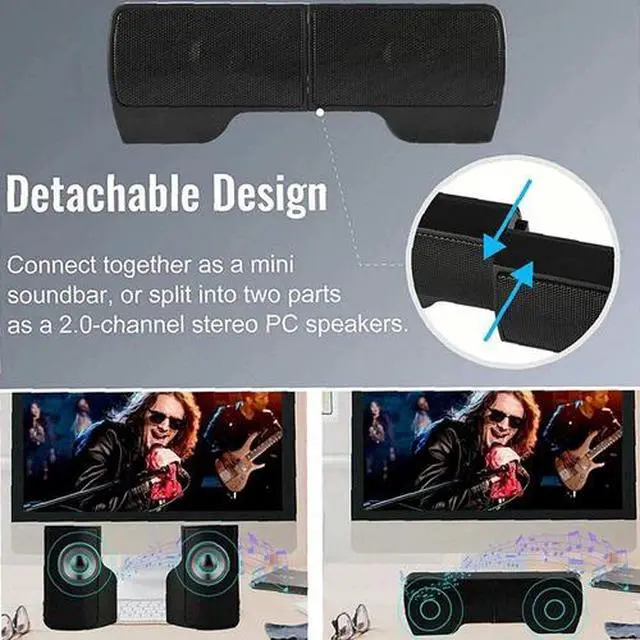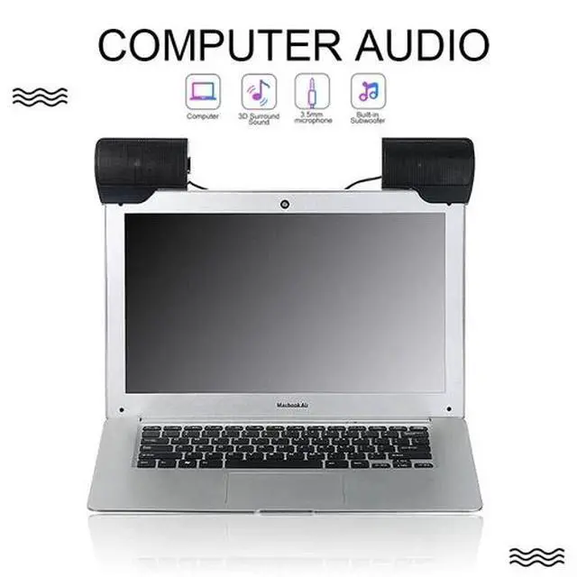 Speakers USB Power Clip-On Computer Stereo Sound Bar 3.5mm for Desktop Laptop PC