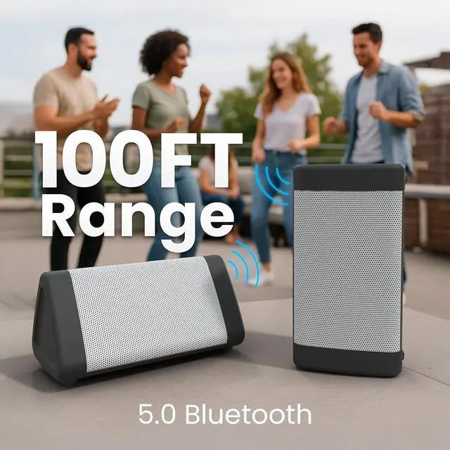 IPX5 WATER-RESISTANT DESIGN - Enjoy music in the shower, on beach days, or at pool parties with this water-resistant Bluetooth speaker. The splash-proof design makes it perfect to use as an indoor or outdoor speaker.