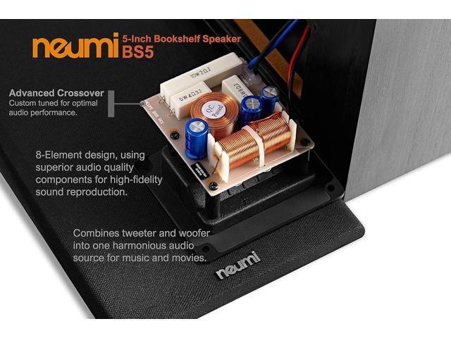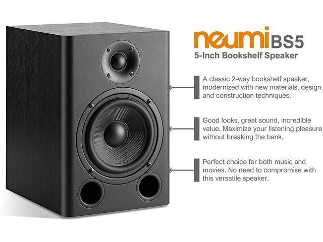 NEUMI BS5 Passive Bookshelf Speakers, 5-Inch Woofer, 1-Inch Tweeter, Dark Wood, 1 Pair