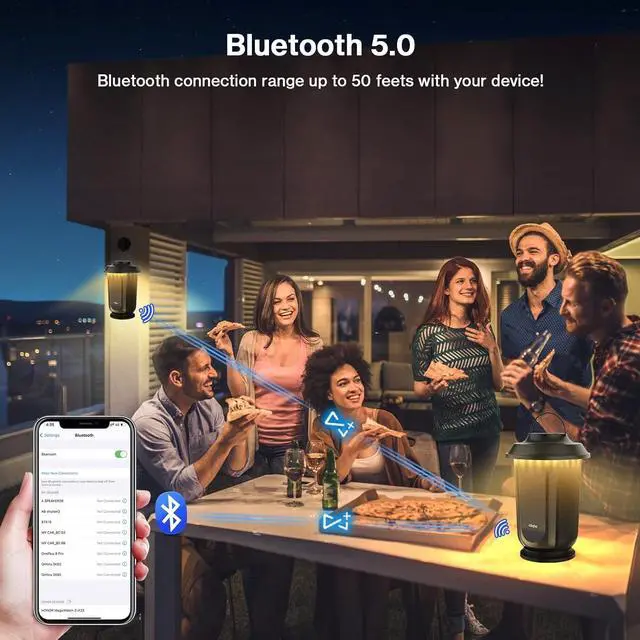 Warm White Rhythm Lights: The outdoor Bluetooth speaker is surrounded by 20 bright LED lights, creating an outstanding rhythm light show that will make your party shine even brighter. This Bluetooth wireless speaker can be used for lighting and decoration in gardens, patios, porches, yards, and walls