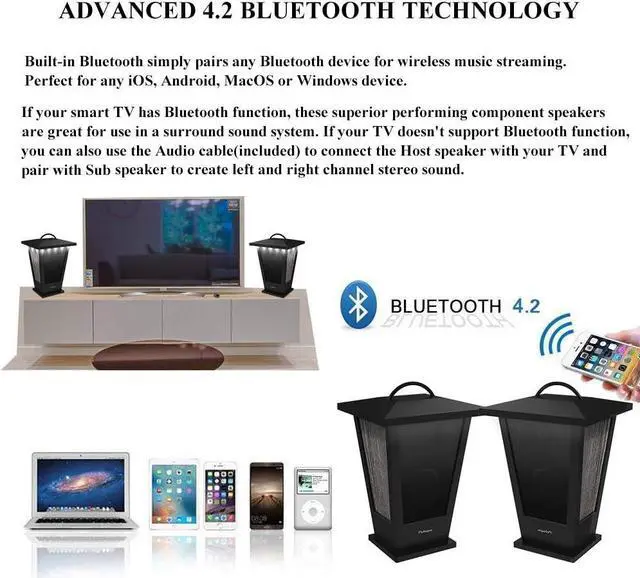 LED LIGHTING & POWERFUL SOUND: Enhance your outdoor vibe with 20 vibrant LED lights built around the speakers. At the heart of each speaker is a 10W unit, delivering powerful sound with crisp highs from a big subwoofer. Advanced digital sound technology, noise and wind reduction, and a unique loudspeaker cavity structure combine to deliver premium acoustic performance. With stereo pairing, youll enjoy full, rich sound that fills the space, especially around a summer pool or evening gathering.