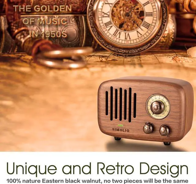 Vintage Bluetooth Speaker with Unique and Elegance Design, Art & Collection -- 100% natural Eastern black walnut. No two pieces will be the same. Each heartwood piece is exquisitely crafted to embrace the natural characteristics of the wood, giving it an elegance and texture and proving to be a worthy investment, bringing a touch of sophistication into each home.