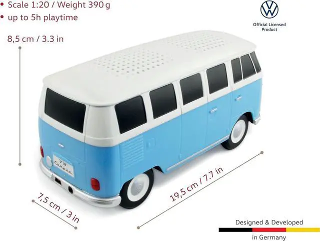 OFFICIALLY LICENSED: The iconic Bluetooth speaker in the VW T1 Bus design is an officially licensed Volkswagen product. Our items are developed in Germany to meet our high-quality standards.