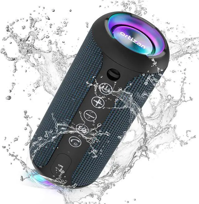 IPX7 100% Waterproof: IPX7 waterproof protection safeguards against rain, dust, snow, and spills, which makes Ortizan outdoor speaker even can be fully immersed up to 3ft for about 30 minutes underwater, perfect for showering, hiking, and camping. No worries about weather and outdoor condition and being the Rocker on your trip!