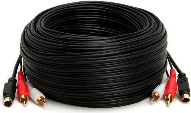 Our S-Video cable is manufactured with 75-ohm coaxial design which maximizes resolution and color reproduction, to prevent distortion, noise and other interference and connects your TV, VCR, DVD player, camcorder, projector, video game console or any source with RCA audio (left/right) and video to your TV, monitor or A/V receiver.