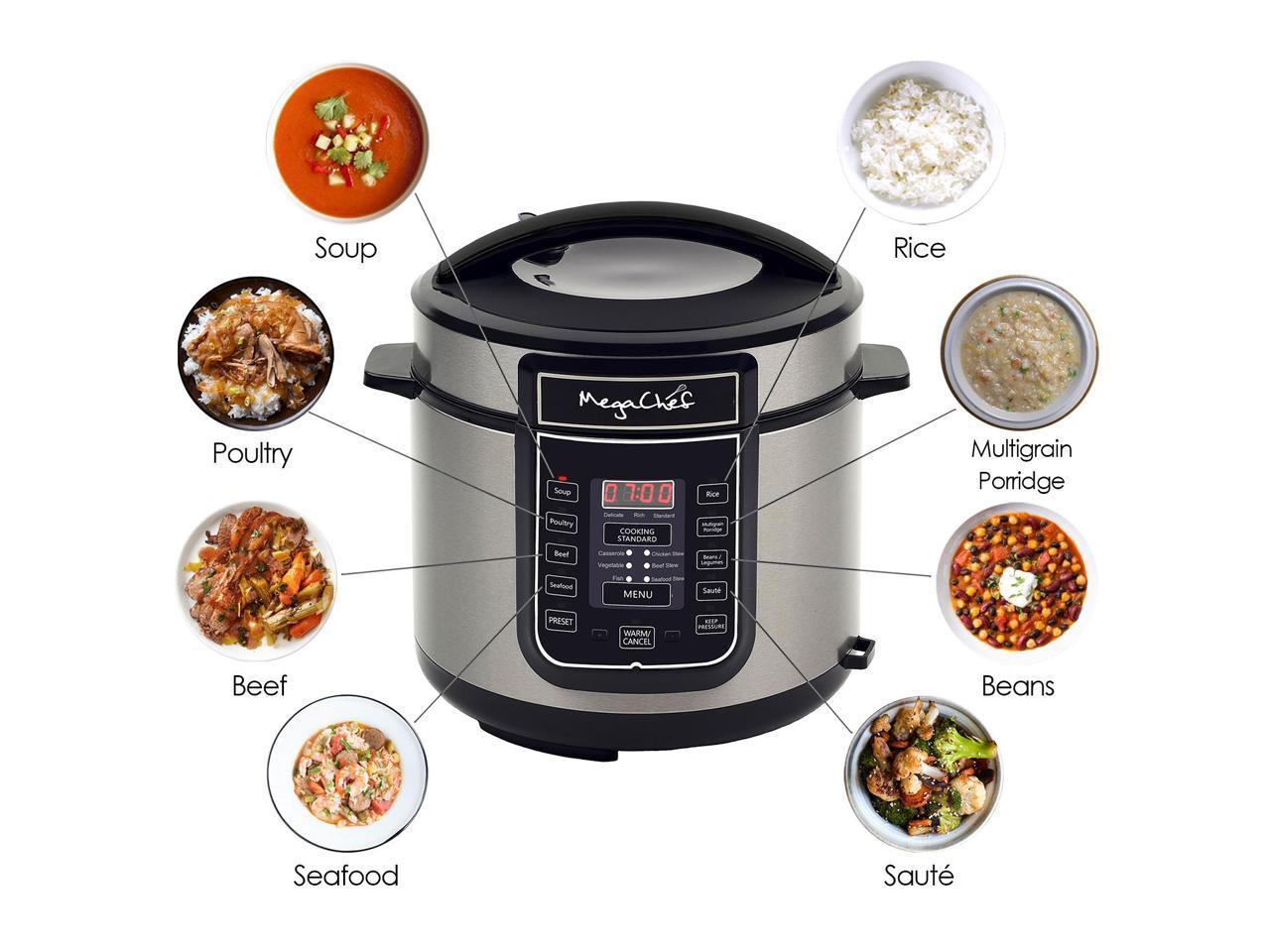 MEGACHEF MCPR100A Quart Digital Pressure Cooker with 14 Pre-set Multi Function