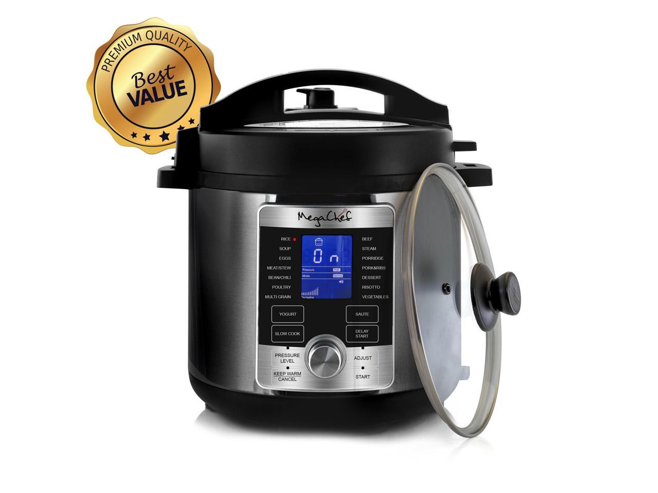 Megachef MCPR-6100 6 qt. Electric Digital Pressure Cooker with Lid, Stainless Steel
