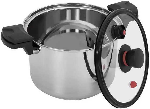 High Safety: Two secure easy-open latches, a silicone pressure relief valve, and a safety valve keep the pressure within safe limits, avoiding danger during cooking and protecting your safety.