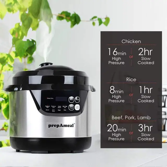User-friendly digital display shows cooking time, button indicator lights, and one-touch settings to adjut time, temperature, and pressure easily.