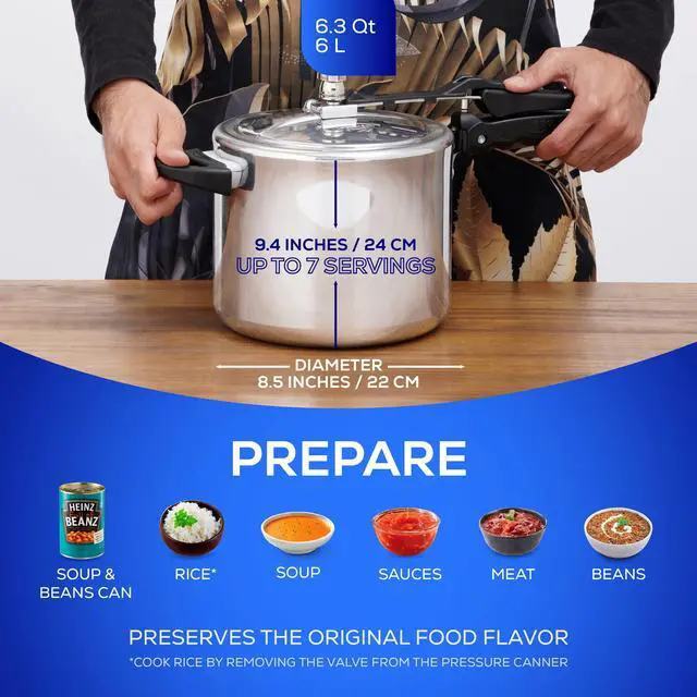 Prepare delicious beans, soups, and meats in no time with our traditional canner! Make soft beans and adapt the cooking time to each type of grain depending on its hardness. Add everything you need to prepare delicious ribs or any meat without losing nutrients, and take advantage of the pressurized design to highlight the flavors of your soups, stews, and sauces.