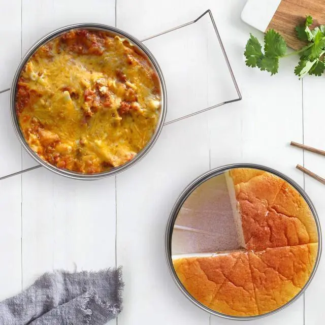 Versatile - 2 tier stackable pans to cook variety of food simultaneously. Great for steaming rice, vegetables, meat or fish. It can be used as a dessert pan to make cheesecakes or make lasagna.