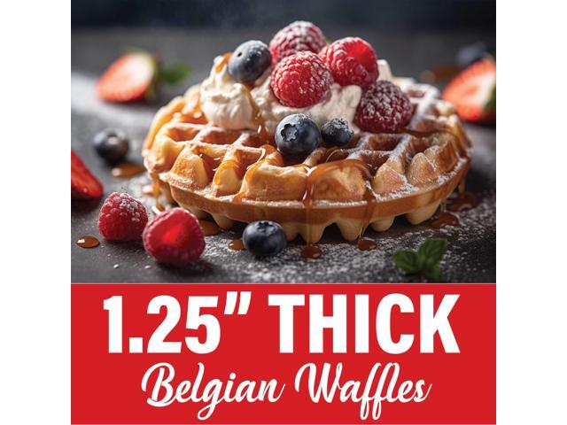 Powerful 520 watt Flip Belgian waffle maker cooks a perfect 5" round, 1.25" thick waffle in just 8 minutes