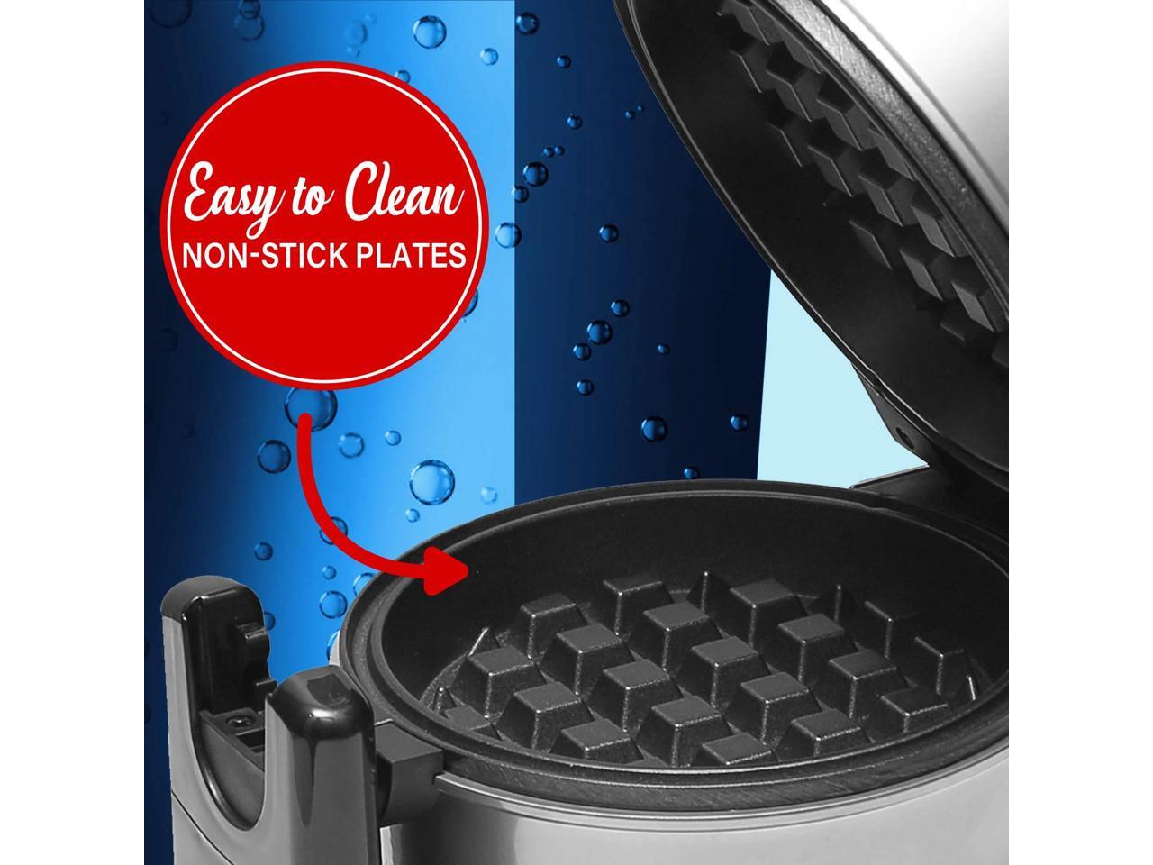 Belgian waffles slide right out of the non-stick plates making cleanup a snap