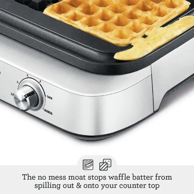 NO-MESS MOAT: Waffle batter has a tendency to spill out onto your counter top, but with this design feature excess stays under control