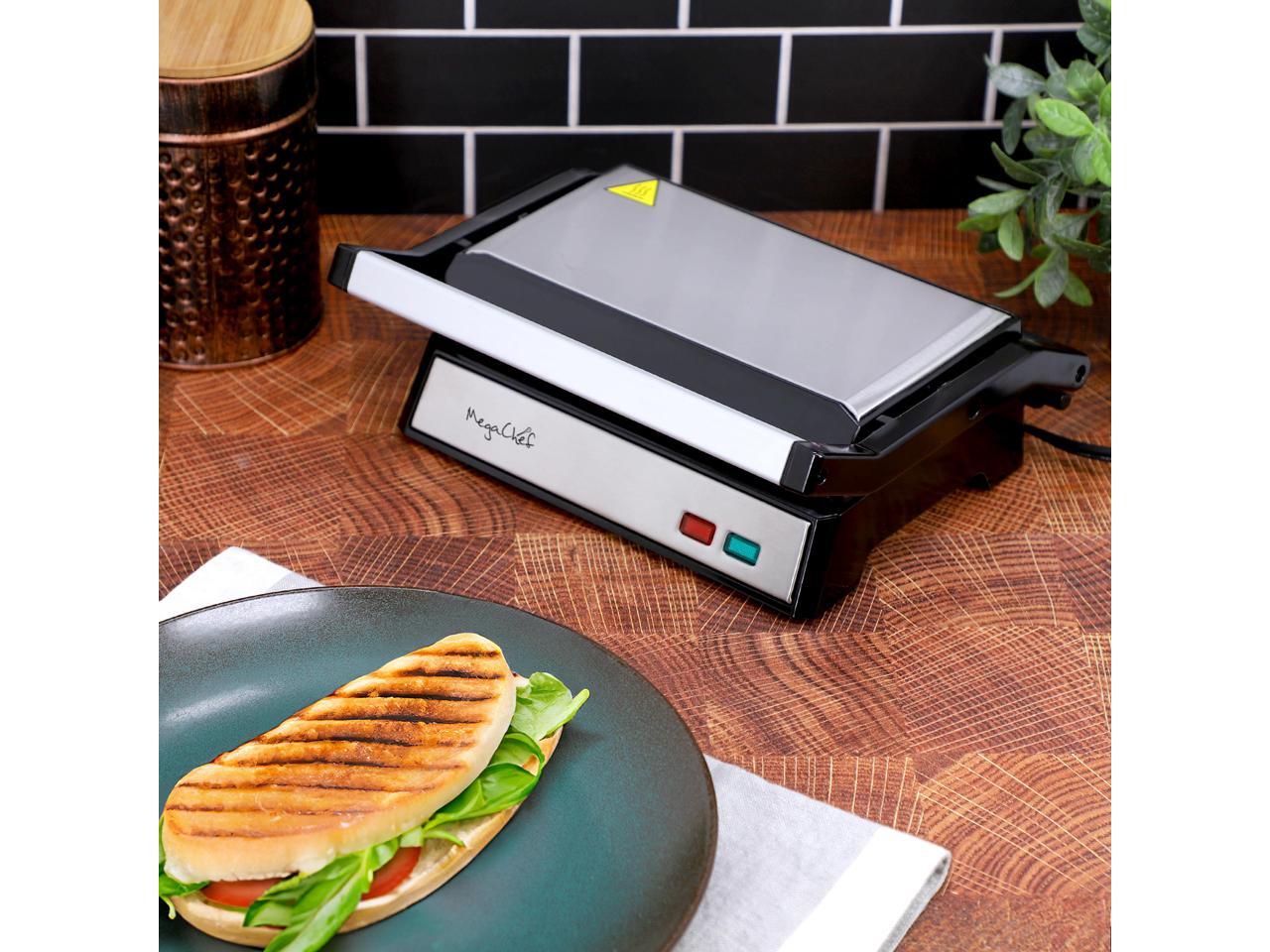 MegaChef Electric Dual Plate Non-Stick Panini Grill Contact Press with Drip Tray