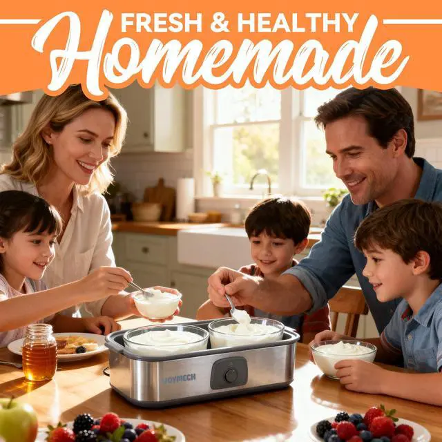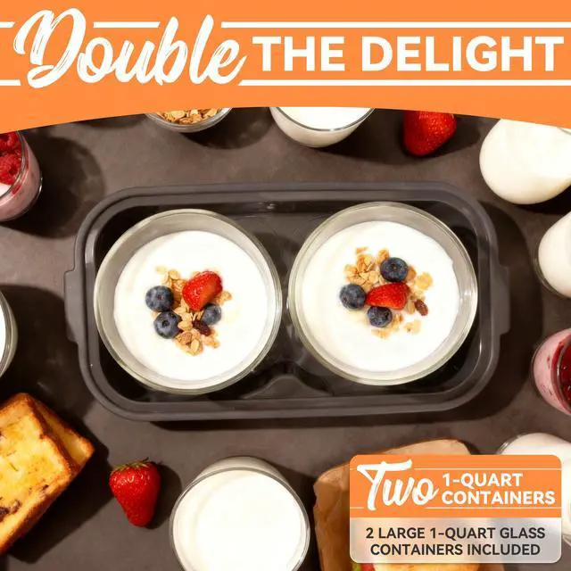 Homemade Organic Yogurt: A Healthy Pick for All: Yogurt is a nutrient gem, rich in protein and calcium, and vital for digestion. Unlike commercial ones, homemade yogurt has no additives, artificial colors, or preservatives. You can manage sugar levels, making it a customizable choice for families, health-lovers, and fitness fans. Mix, Match & Innovate: Personalize Your Yogurt: Our yogurt maker includes two 1-quart containers for bigger batches, perfect for family fun. Experiment with textures from smooth to thick, and add fresh fruits, nuts, or honey. Skip pricey gourmet brands; this cost-effective option lets you make barista-quality yogurt at home. Fresh & Nutrient-Rich Yogurt Every Time: Pure Taste: Nothing beats freshly made yogurt. With minimal natural ingredients, enjoy creamy, probiotic-packed yogurt without refined sugars or synthetic additives in store-bought ones. Whether you like traditional or Greek-style, our machine handles single or bulk servings easily in your kitchen. One-Touch Ease: Yogurt Perfection Made Simple: The fully automatic electric yogurt maker simplifies the process. Press a button and ferment for 8 - 12 hours. Adjust thickness as you like and explore flavors! Create tangy, thick or smooth yogurts tailored to your taste. Each batch is a chance to reinvent snacks. Smart Design: Practical & Safe: It has a modern transparent lid and dishwasher-safe glass jars, blending style with convenience. Made of food-grade materials, it ensures a hygienic fermentation environment. Even heat from the base and pot guarantees consistent, great results every time.