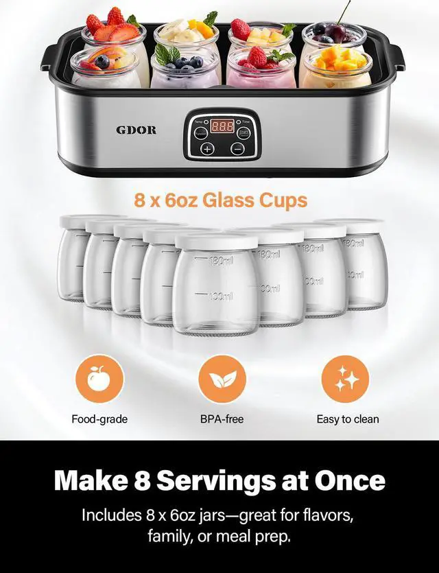 Safe Materials for Everyday Use: Built with BPA-free components and food-grade glass jars, this yogurt maker machine is designed for safe, reliable yogurt preparation for you and your family.