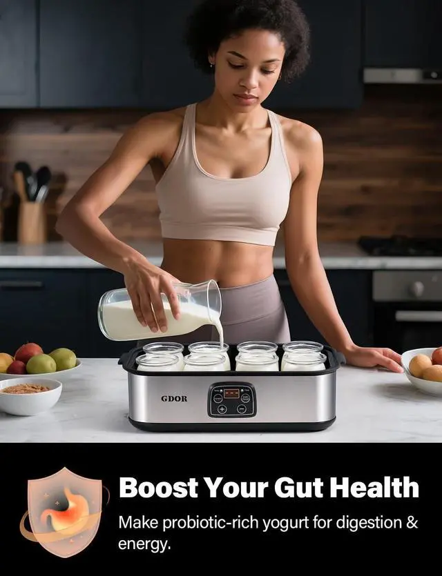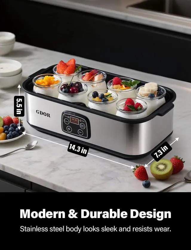 Controlled Fermentation for Homemade Yogurt: This yogurt maker with temperature control enables stable, extended fermentation for yogurt cultures, designed for everyday kitchen use and flexible homemade recipes.