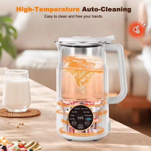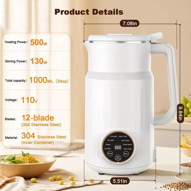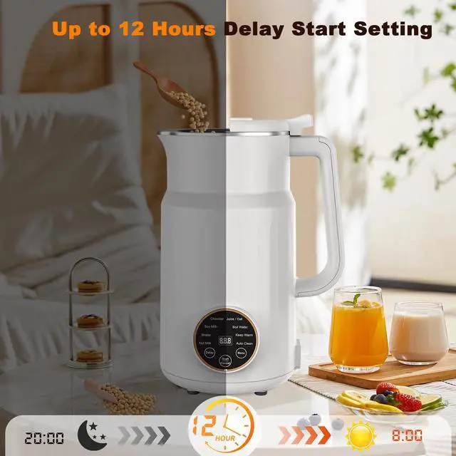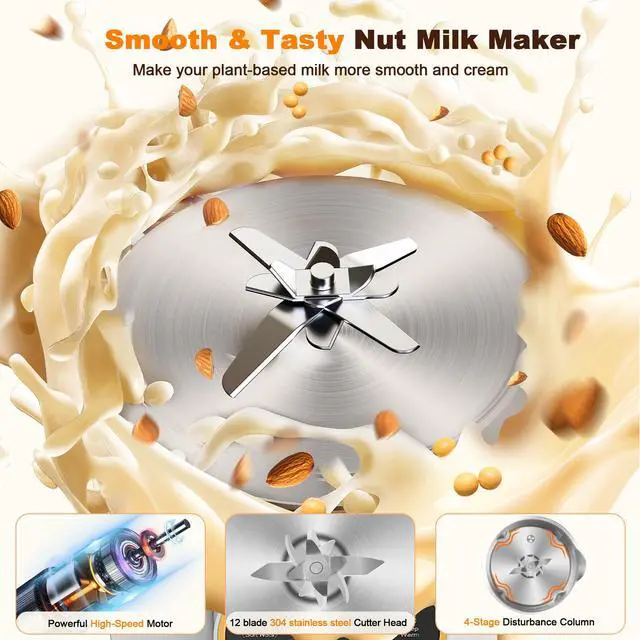 The nut milk maker has a safety lock design, it can only be powered on when the blender cup lid properly installed with the blender cup.