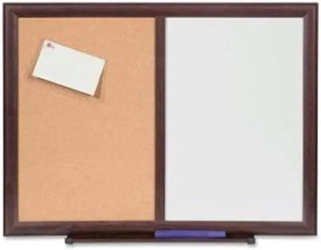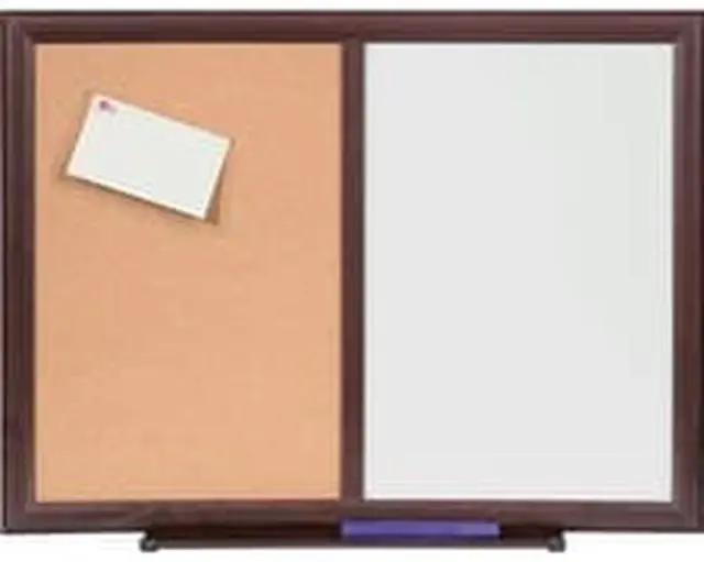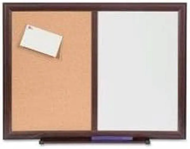 Combo Dry-Erase Board offers two ways to get your message posted and read. Half is a nonmagnetic dry-erase board with a melamine surface where you can write, erase and rewrite notes, reminders and more. The other half features a cork bulletin board where you can pin invitations, tickets, reminders and other bits of vital information. Large combo board includes a marker tray and is highlighted with an elegant Mahogany finish frame made of medium-density fiberboard.