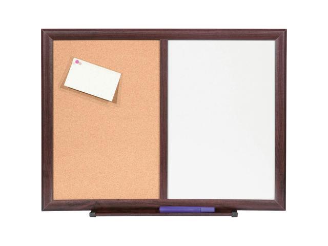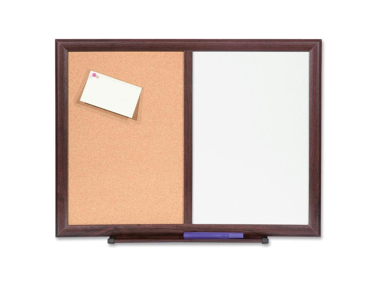 Lorell Bulletin Board Combo Dry-Erase/Cork 24"x18" Mahogany Frame 84270
