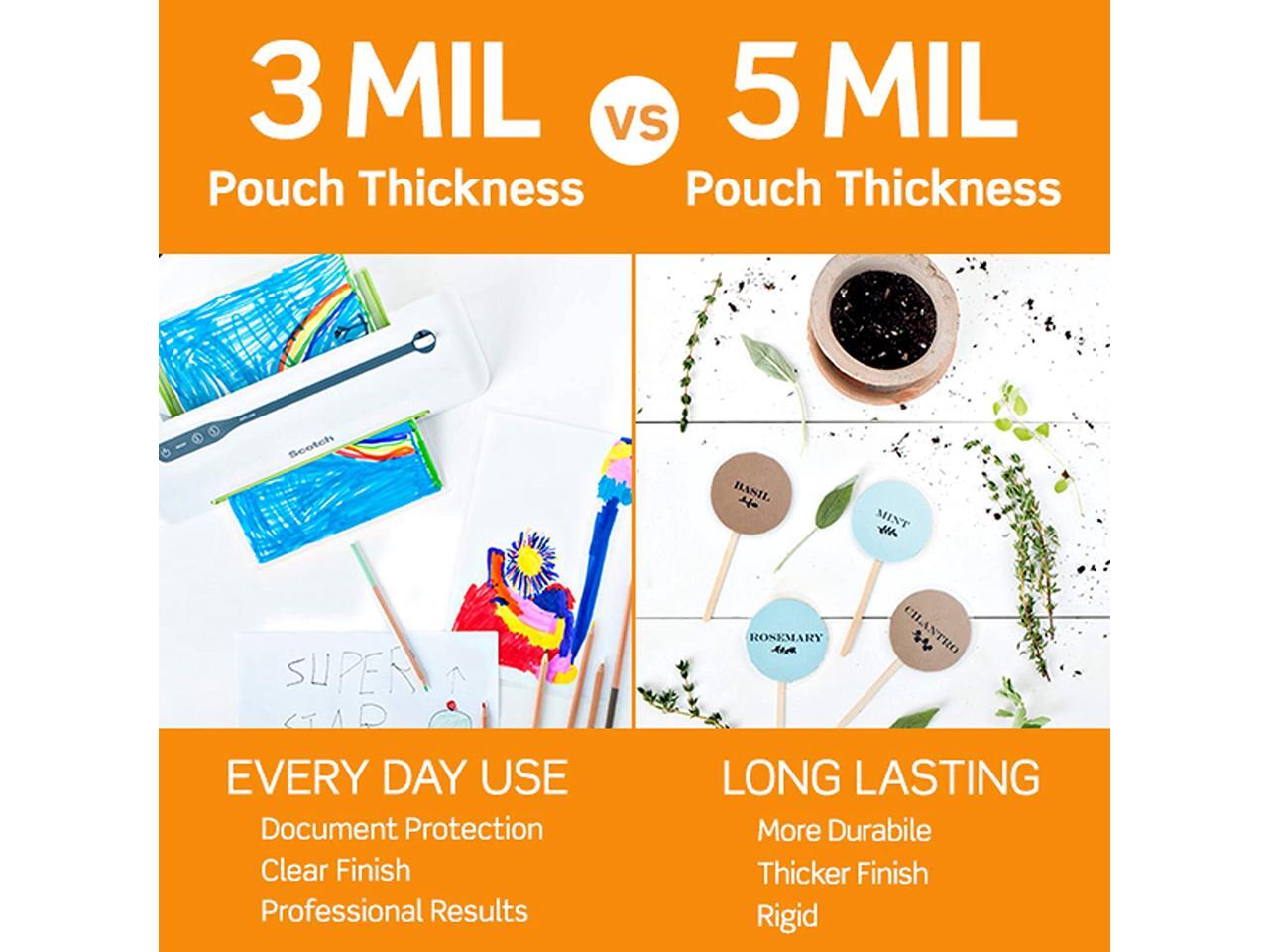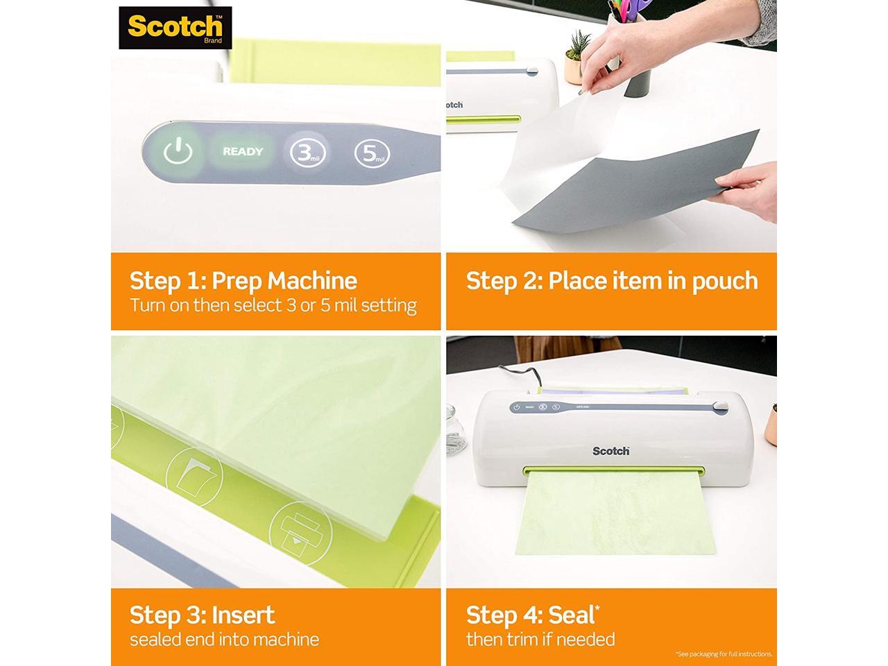 - IDEAL FOR: Great school and office supplies, these laminator pouches are ideal for creating marker-proof, tear-proof and spill-proof paper items. USE WITH: It is recommended to use these self-laminating pouches with Scotch Thermal Laminators.