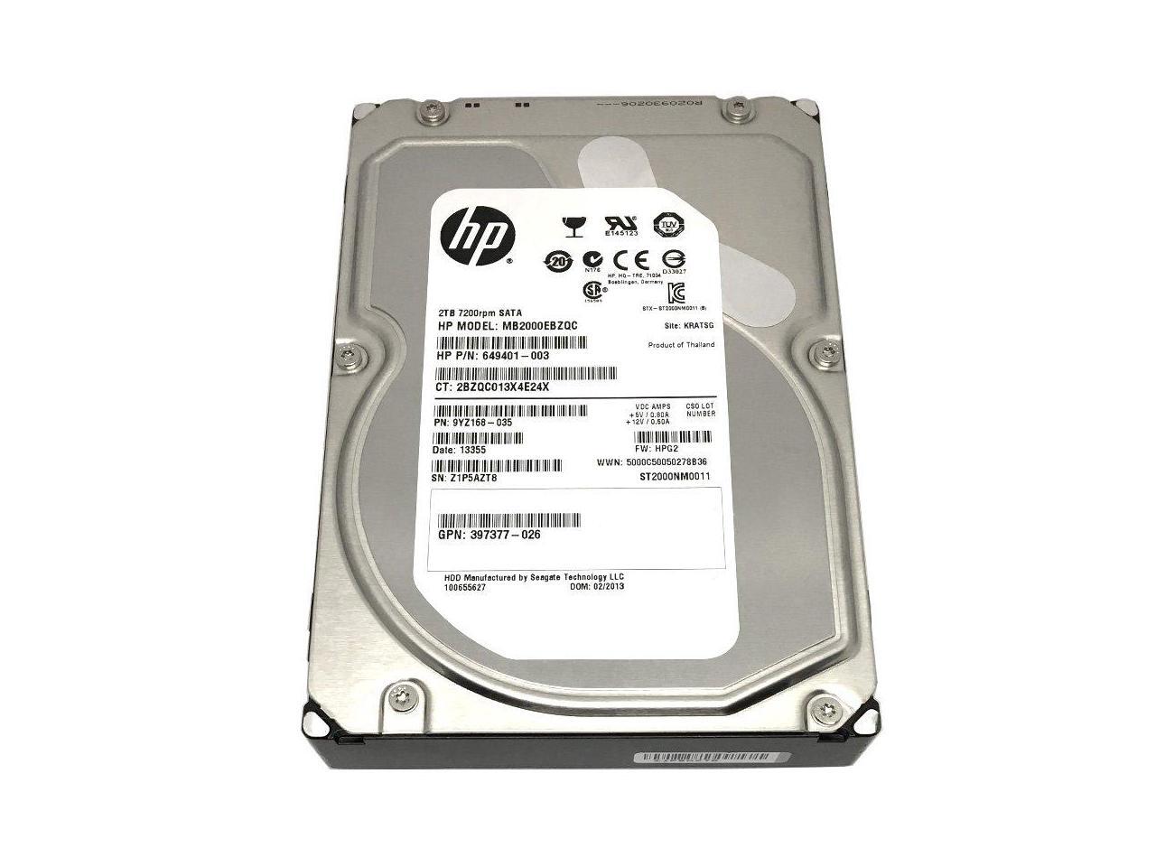 HP 649401-003 2Tb 7200Rpm 3.5Inch Midline Sata 3Gb By S Hard Disk Drive With Tray