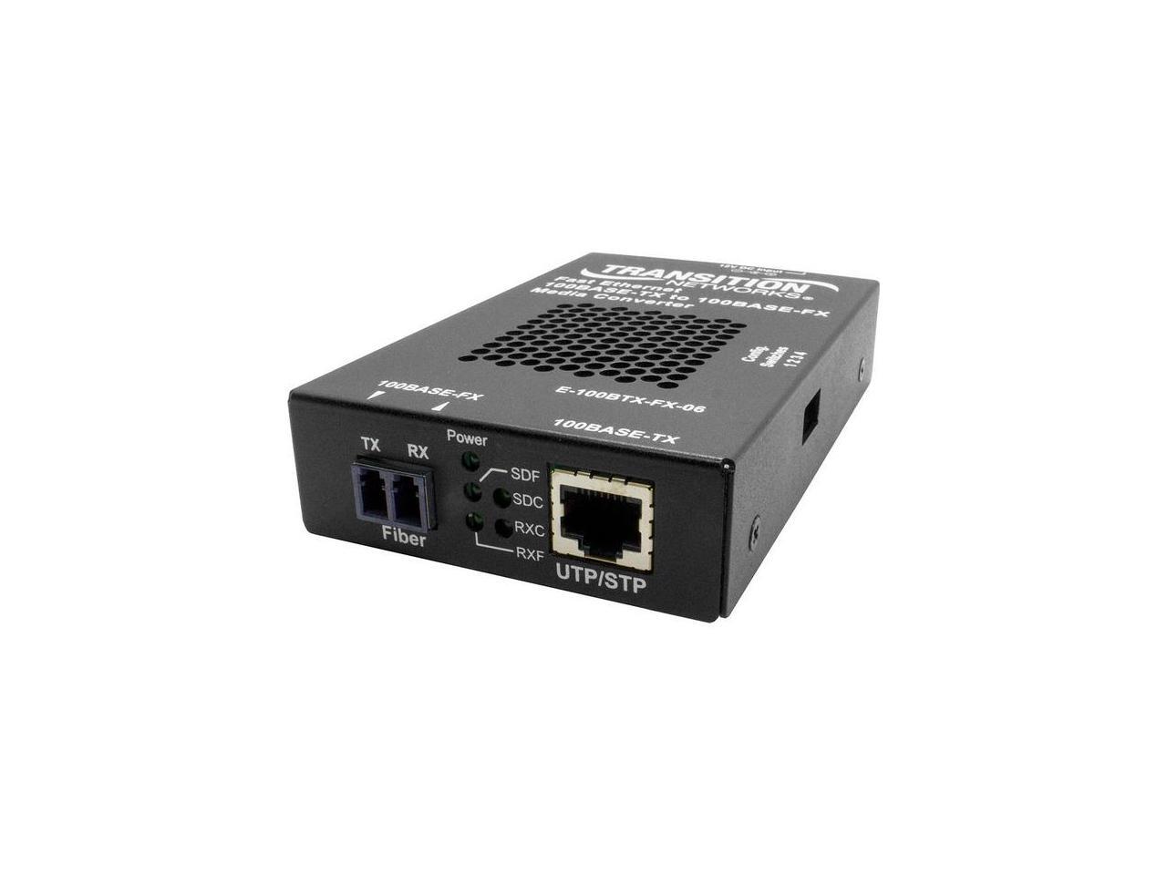 Transition Networks Stand-alone Fast Ethernet Media Converter E100BTXFX06SMLCNA