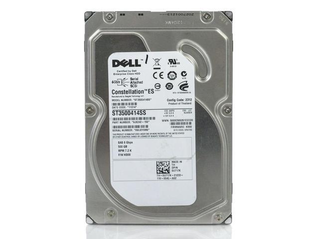 - General InformationManufacturer: Dell-IMSourcingManufacturer Part Number: U717KManufacturer Website Address: http://www.imsourcing.comBrand Name: Dell-IMSourcingProduct Name: Seagate Hard DriveProduct Type: Hard DriveTechnical InformationStorage Capacity: 500 GBDrive PerformanceSpindle Speed (rpm): 7200Network & CommunicationWireless LAN: NoInterfaces/PortsDrive Interface: Near Line SAS (NL-SAS)Physical CharacteristicsDrive Type: InternalForm Factor: 3.5"