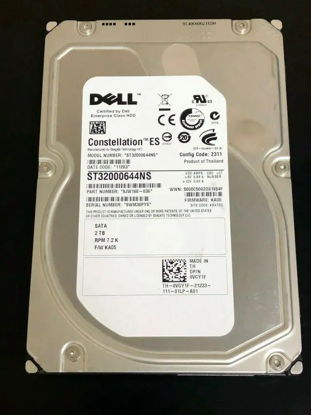 Dell 2Tb 7200Rpm 64Mb Buffer Sataii 3.5I nch Hard Disk Drive With Tray For Poweredge Server Vgy1FWeight 5.1H eight1Width1Length1"