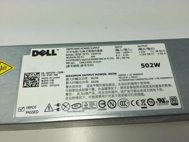 DELL 0Xtgfw 502 Watt Power Supply For Poweredge R610