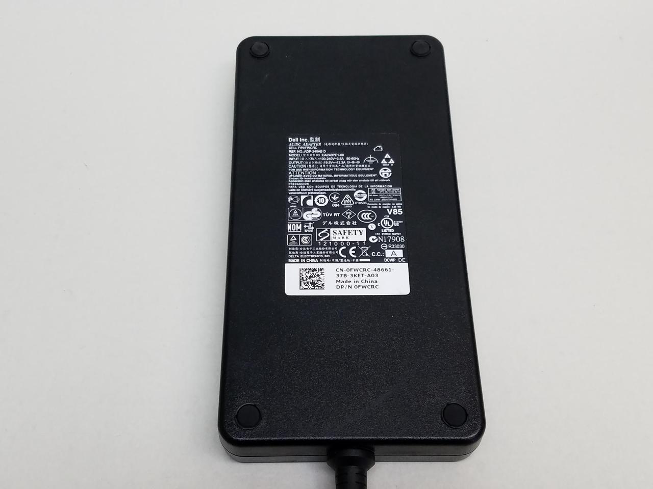 General InformationManufacturer: Dell TechnologiesManufacturer Part Number: FWCRCManufacturer Website Address: http://www.delltechnologies.comBrand Name: DellProduct Name: AC AdapterProduct Type: AC AdapterPower DescriptionMaximum Output Power: 240 W