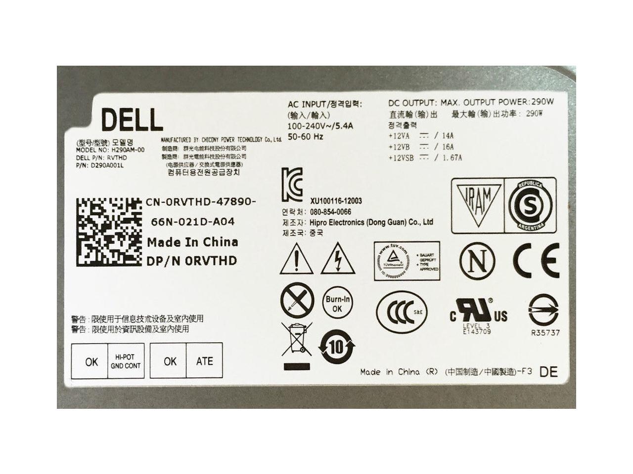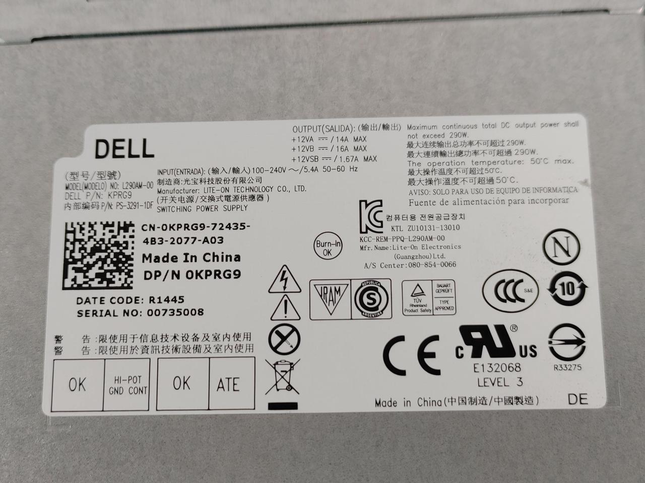 290W Power Supply for Dell KPRG9 Switching LiteOn L290AM-00 Optiplex 3020 Tower