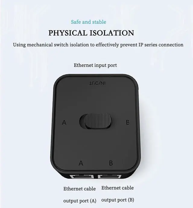 Physical Isolation & IP Safety:Mechanical switching ensures true physical separation between networks or devices, preventing IP address conflicts or unintended data crossover.