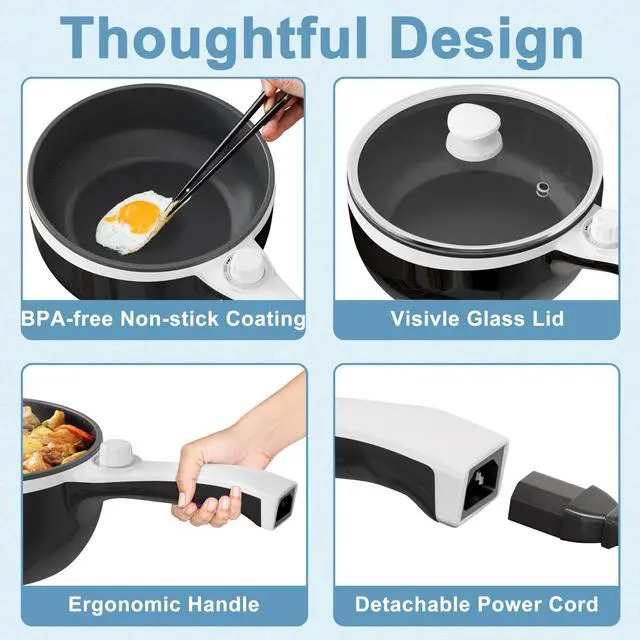 • Cook & Sauté without stove anytime - In addition to the cooking function of the traditional pot, this electric pot can be also used to sauté food because it contains food grade non-stick coating. The package includes a silicone turner spatula for you as the present. You can use the appliance to sauté steak, chicken, fried rice, cook noodles, eggs, enjoy a dinner, etc. This must have item in your dorm/house or van life cooking will meet all your expectations for deliciousness!