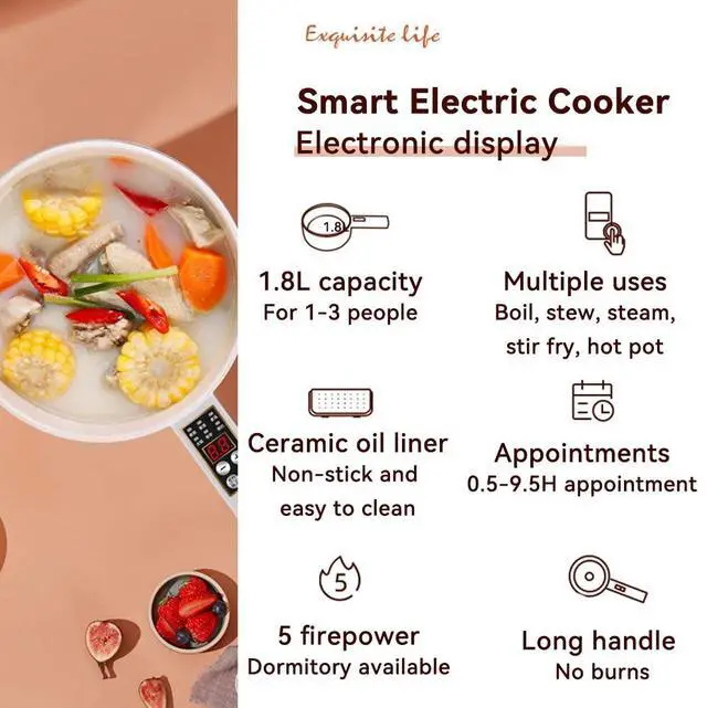 - The small size and quick heating electric cooker is a good choice for your home.