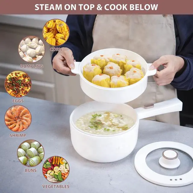 - With the steamer, you can steam or heat some food while cooking, such as bread, dumplings, eggs, meats, vegetables etc.