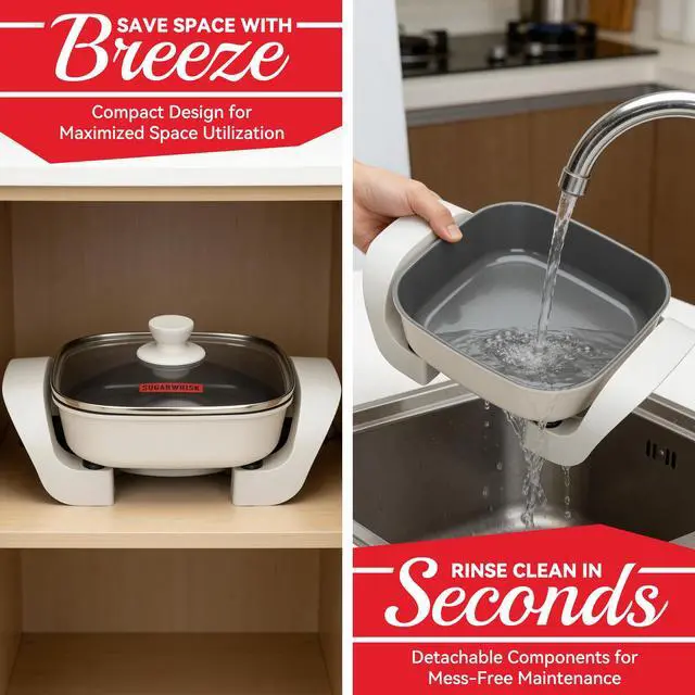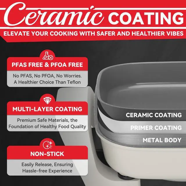 [Ultra-Smooth Ceramic Non-Stick Coating]: Glide food effortlessly off the premium ceramic non-stick surfaceno scraping, sticking, or stubborn residue. Enjoy hassle-free cooking and lightning-fast cleanup, especially after removing the detachable temperature control unit for easy access to every nook.