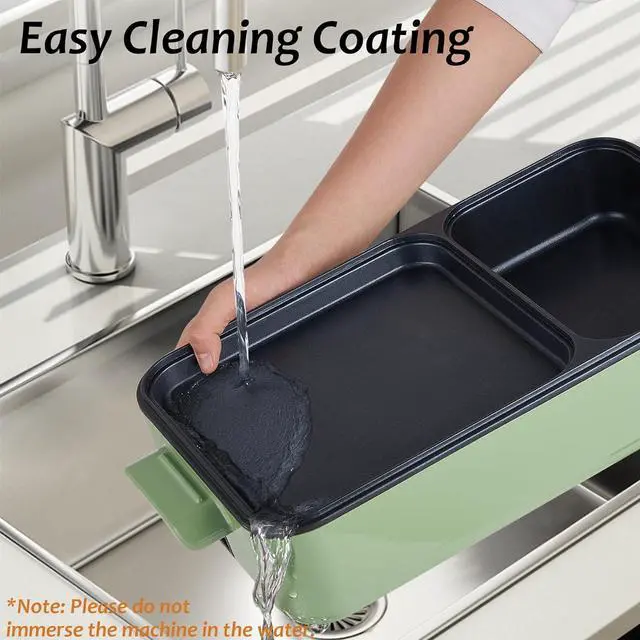 Non-Stick FeatureThis appliance has a healthy and Eco-friendly coating that contains no harmful chemicals even in high temperature. This coating offers superior food release, preventing food from sticking so that you can use less oil than uncoated cookware and easy to clean after use. Also, it produces less smoke than traditional BBQ. You can enjoy the hot pot and BBQ in a healthier way.