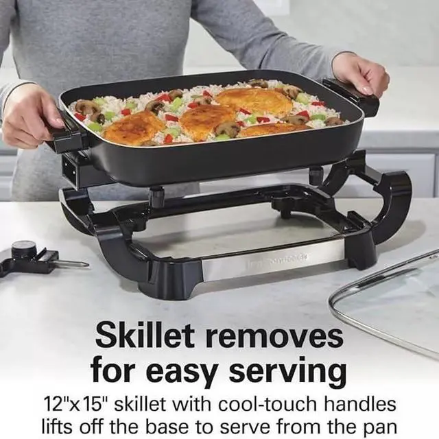EASY SERVING & CLEANUP: The skillet lifts off the base for easy serving at the table, and the skillet, glass lid, and base are all dishwasher-safe for quick and effortless cleanup after your meal.