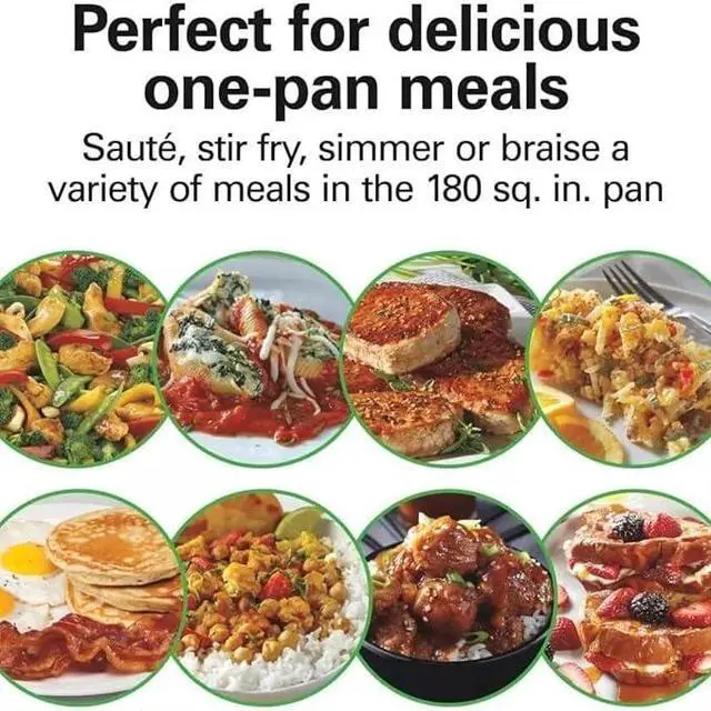 VERSATILE ONE-PAN MEALS: With a large 180 sq. in. cooking surface, you can easily prepare a wide variety of one-pan meals, from sautéing and stir-frying to simmering and braising, without the need for multiple pans.