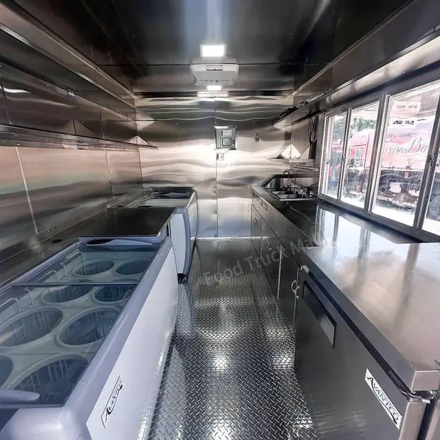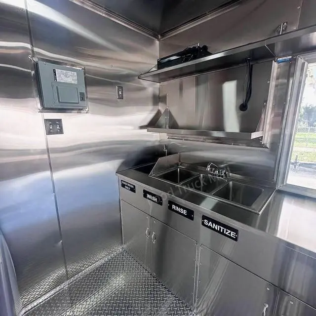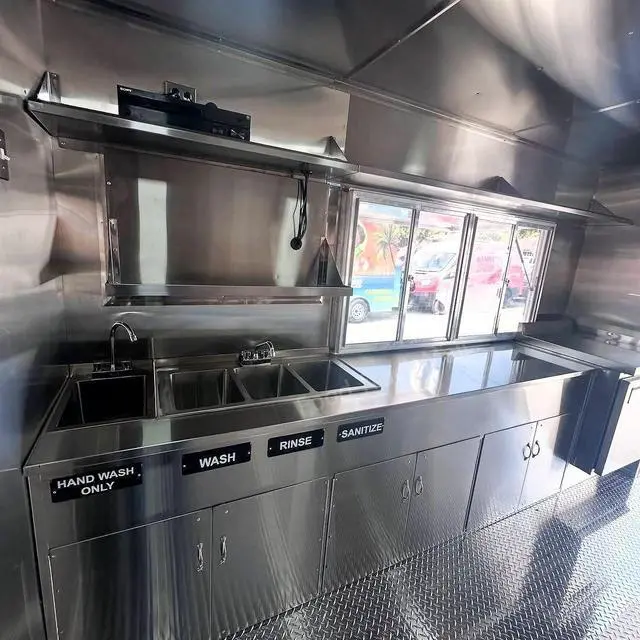 Massive Prep Surfaces: The customized concession catering car provides expansive stainless steel worktables, allowing your team to chop, marinate, and plate food simultaneously for rapid customer turnaround.