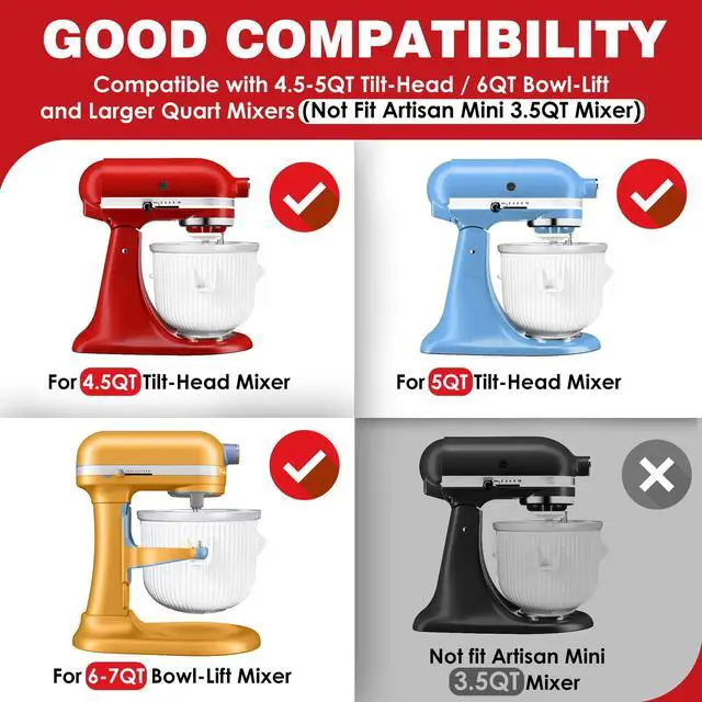 | For All KA Models | Only Not Fit 3.5QT Mini | For All KA Models | For 4.5/5QT Tilt-Head | For 4.5/5QT Tilt-Head |