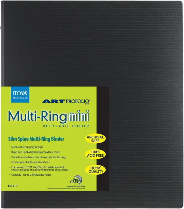 Whether you're presenting a portfolio, organizing research papers, or storing precious artwork, the Itoya 8.5x11" Art Profolio Multi-Ring Mini Refillable Binder is a smart investment for anyone seeking a blend of style, durability, and functionality in their organizational tools.